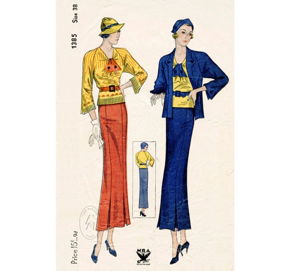 Vintage Sewing Pattern 1930s 30s Three Piece Suit Skirt Blouse Etsy